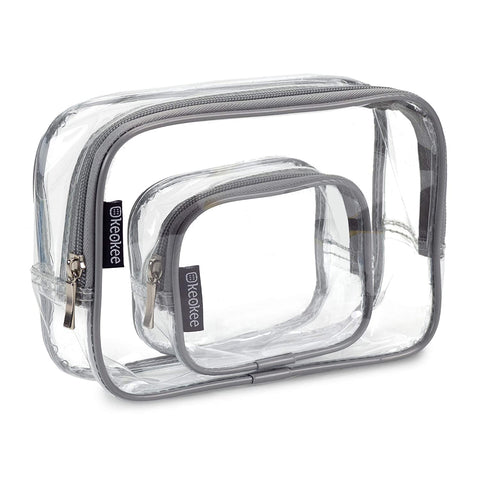 The Keokee's Clear 2-Piece Hanging Travel Toiletry Bag is built with high-quality materials, features a strong clip and an organizer inside to keep things tidy. It's also clear, so you can easily see what's inside without opening it.