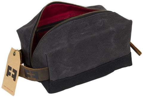 If you are looking for a durable, high-quality bag that has room for all your toiletries and is still compact enough to carry on a plane, then look no further than FAT FELT's canvas shave and toiletries bag. The bag is made of an 8oz soft waxed-canvas interior and a 16oz hard waxed canvas exterior that will stand the test of time.